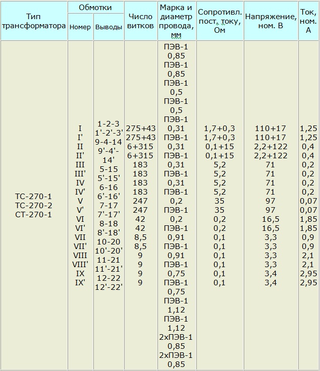 Тса 270 характеристики трансформатора 121 фото