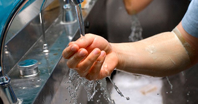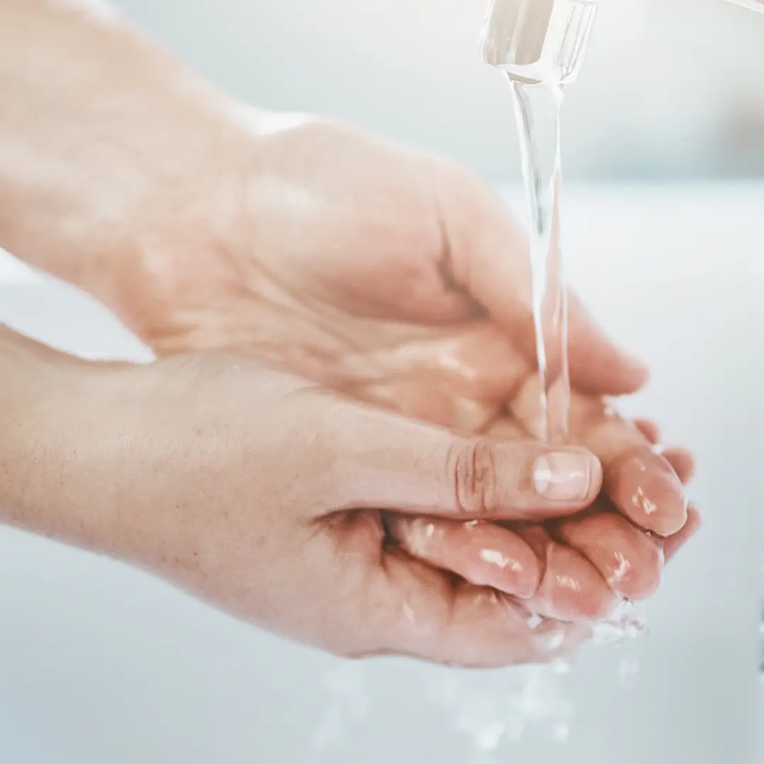 Тщательно смывают водой