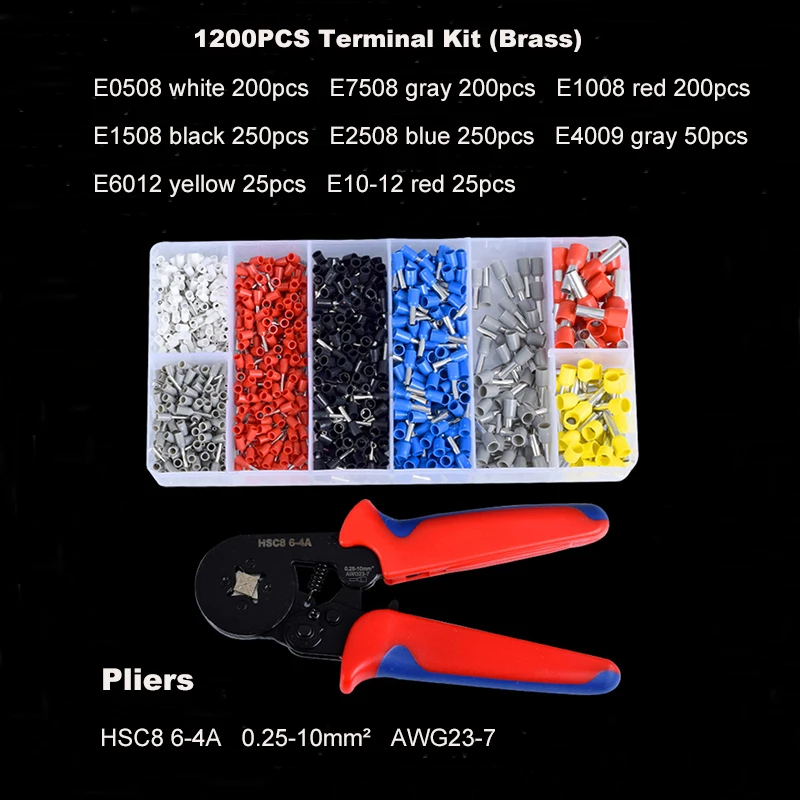 «Tube Terminal Box Kit Crimping Pliers E0508~E10-12 Insutated Cord End Electric Wire Cable Connector Ferrules 28-7AWG 0.08-10mm2» по лучшей цене на рынке! Всего за 14$ (1330рублей)