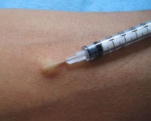 Туберкулин вводят подкожно в руку с внутренней стороны предплечья . Туберкулин - неживая вакцина и является безвредной в том количестве, которое необходимо для проведения пробы Манту .