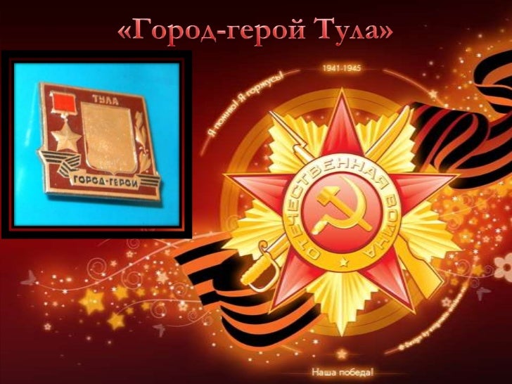 ГOPOД-ГЕРОЙ Тула . Город мастеров . За героизм и мужество, проявленные в защите Родины во время Великой Отечественной войны, 7 декабря 1976 года Туле была присвоена высшая степень отличия, звание «Город-герой» .