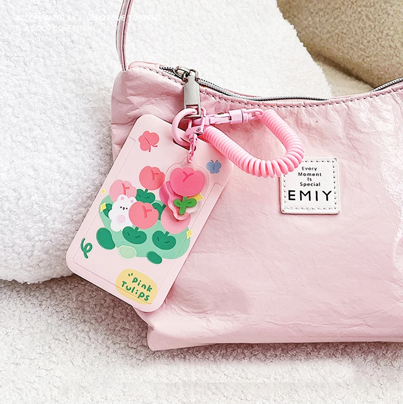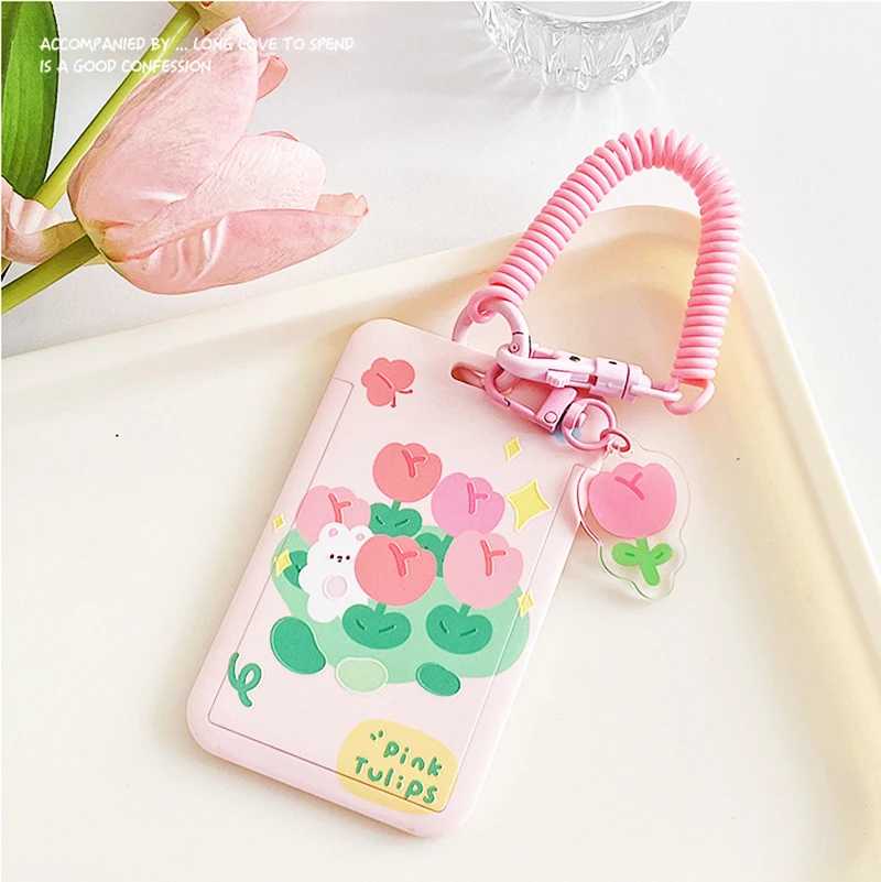 Tulip Bus Card Sleeve Cute Elastic Rope Student School Card Bus Meal Card Protection Sleeve Retractable Card Holder - Купить с бесплатной доставкой