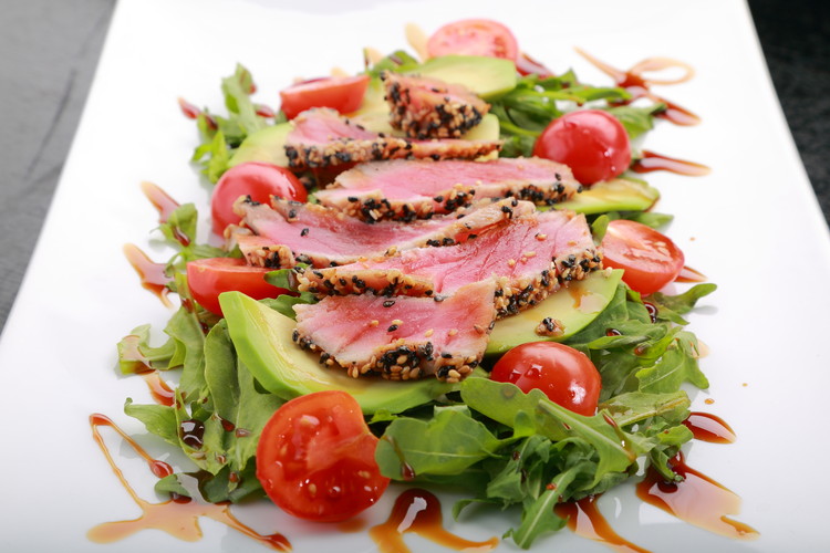 Тунец с авокадо и помидорами