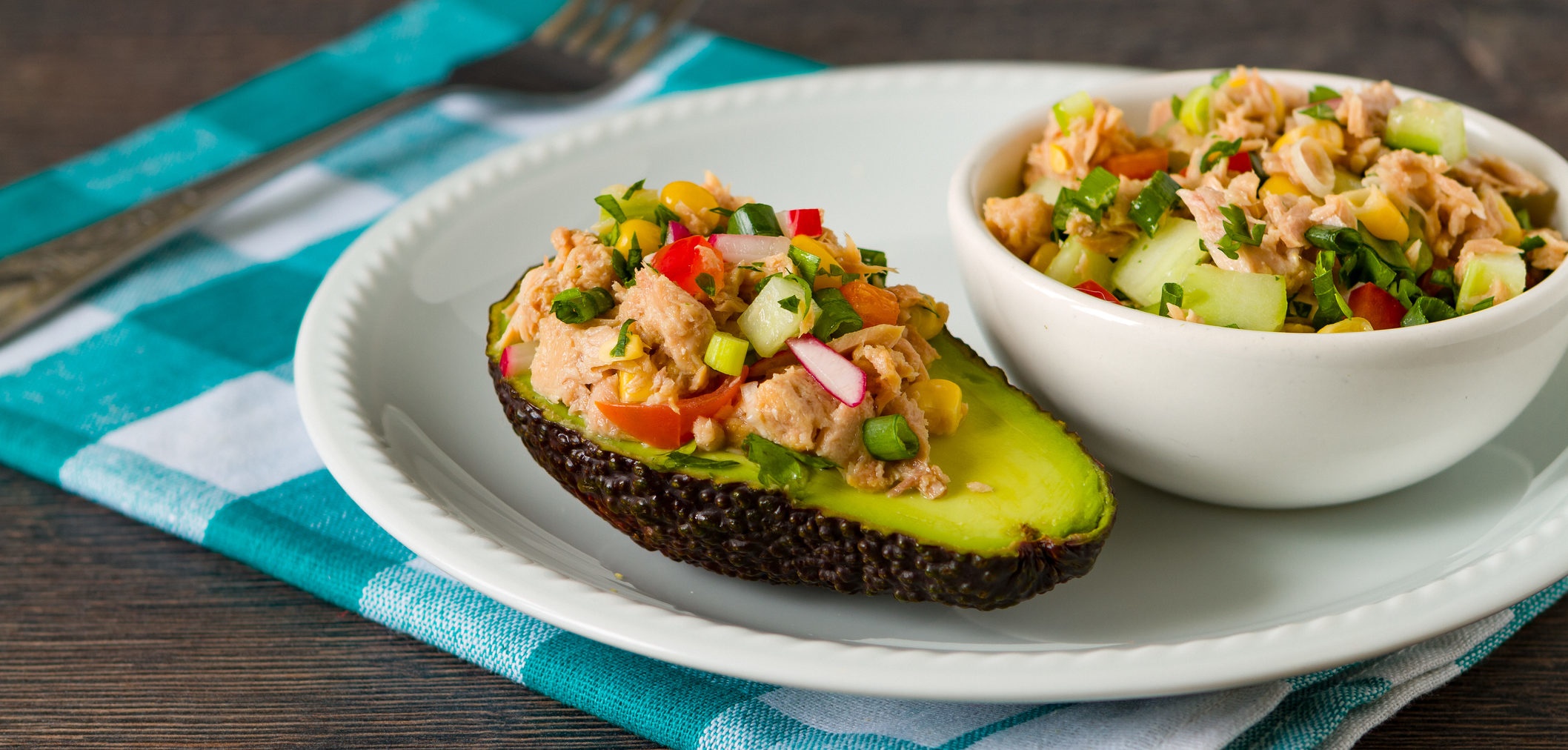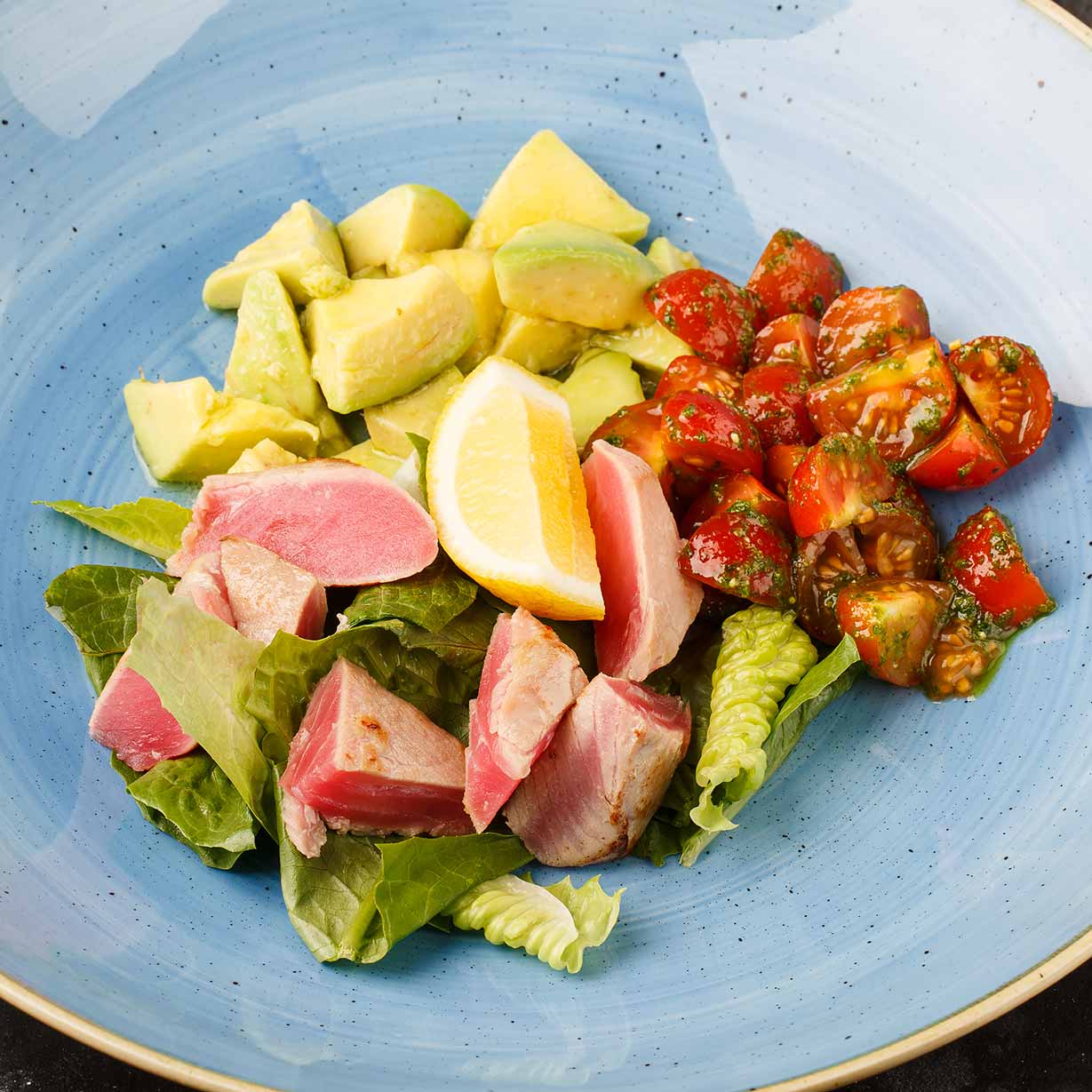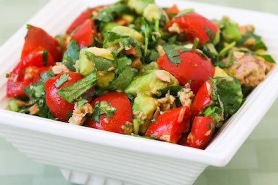 Тунец с авокадо и помидорами