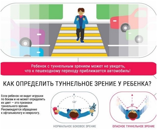 Поле зрения неоднородно. В нем выделяются зоны отчетливого и смутного видения (центр и периферия). Взаимоотношения между ними не столько анатомические, сколько функциональные. Бывают ситуации, когда поле зрения становится еще меньше – это стресс и психофизические заболевания. В доказательной медицине даже есть такой термин «туннельное зрение».