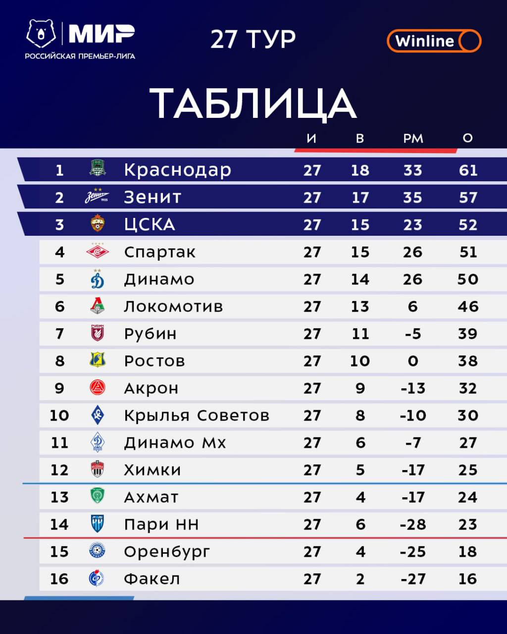 Тур таблица рфпл по футболу