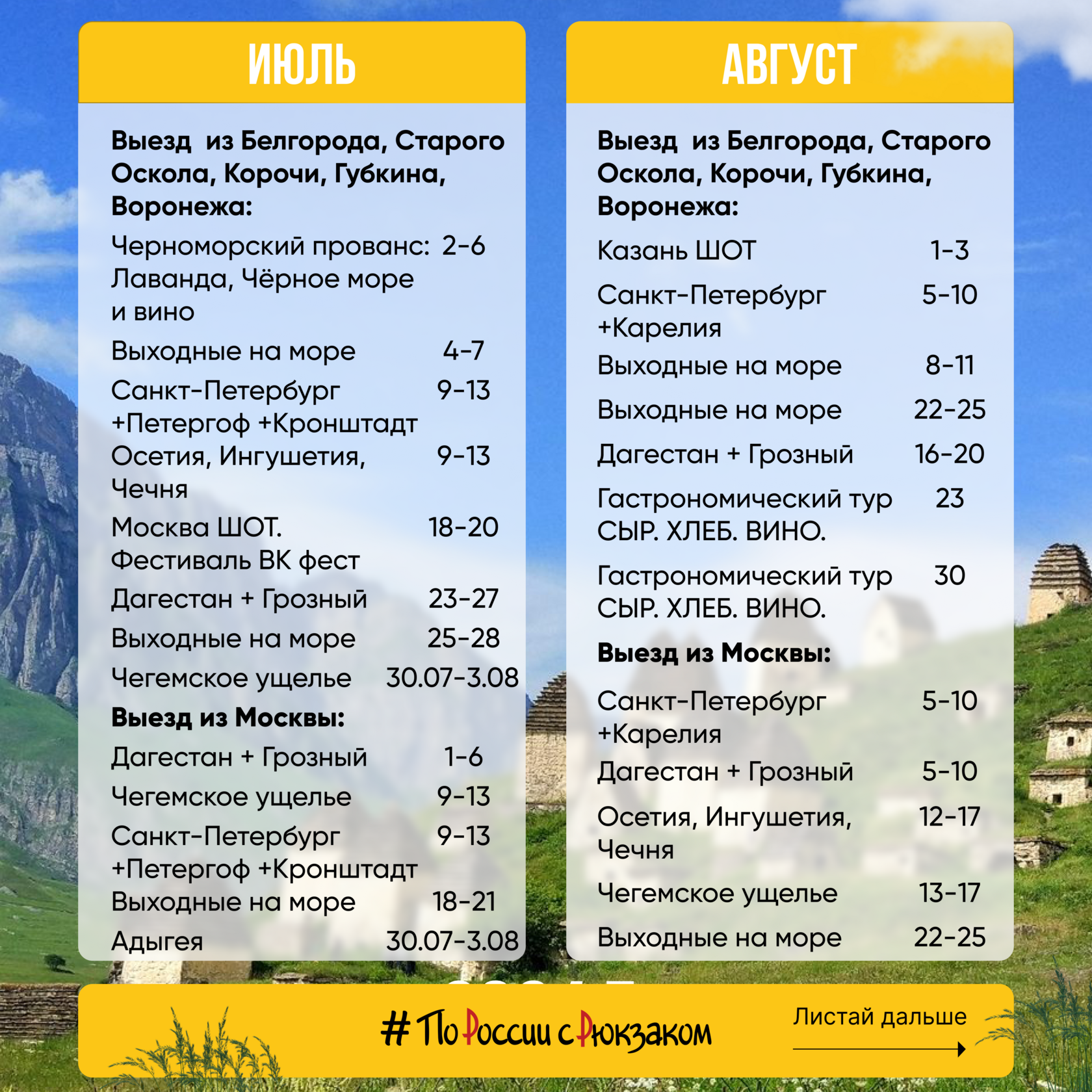 Тур выходного дня август