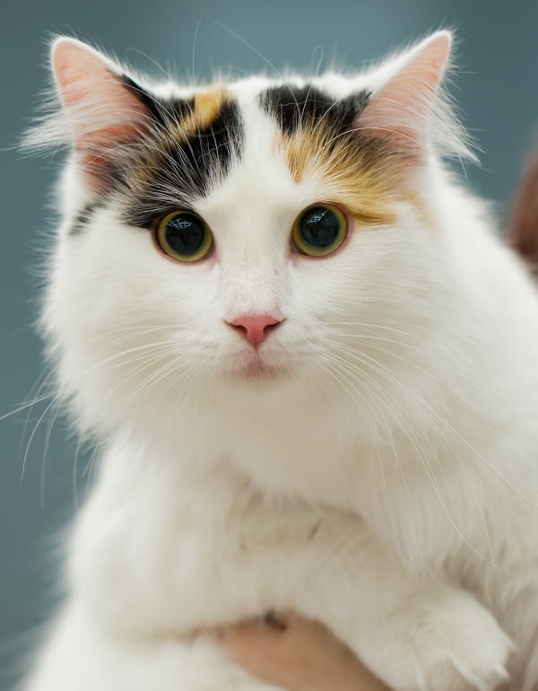 На фото кошки породы Турецкий ван популярных окрасов Бывает, что на свет появляются патиколорные и биколорные малыши, процент белой шерсти у которых занимает половину и более всей шерсти .