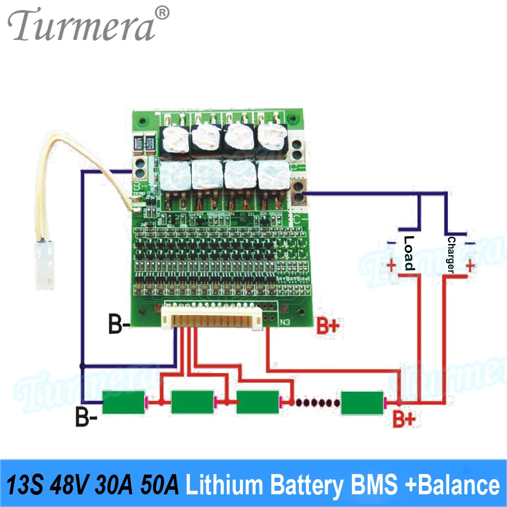 «Turmera 48V E-Bike Battery Box Case 13S 30A 50A Balance BMS with 13S8P 18650 Holder DC XT60 Plug Welding Nickel for Diy Pack Use» по лучшей цене на рынке! Всего за 44$ (4180рублей)