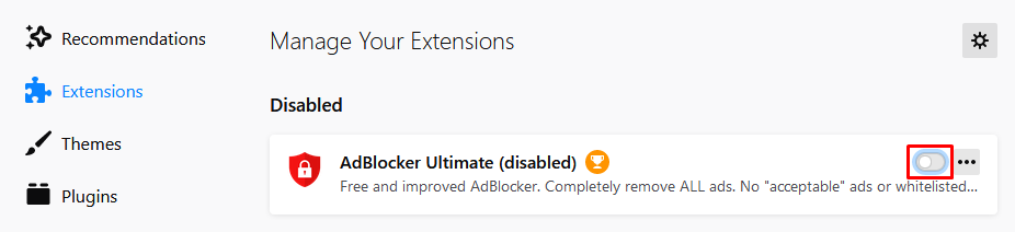 Turn off the adblock