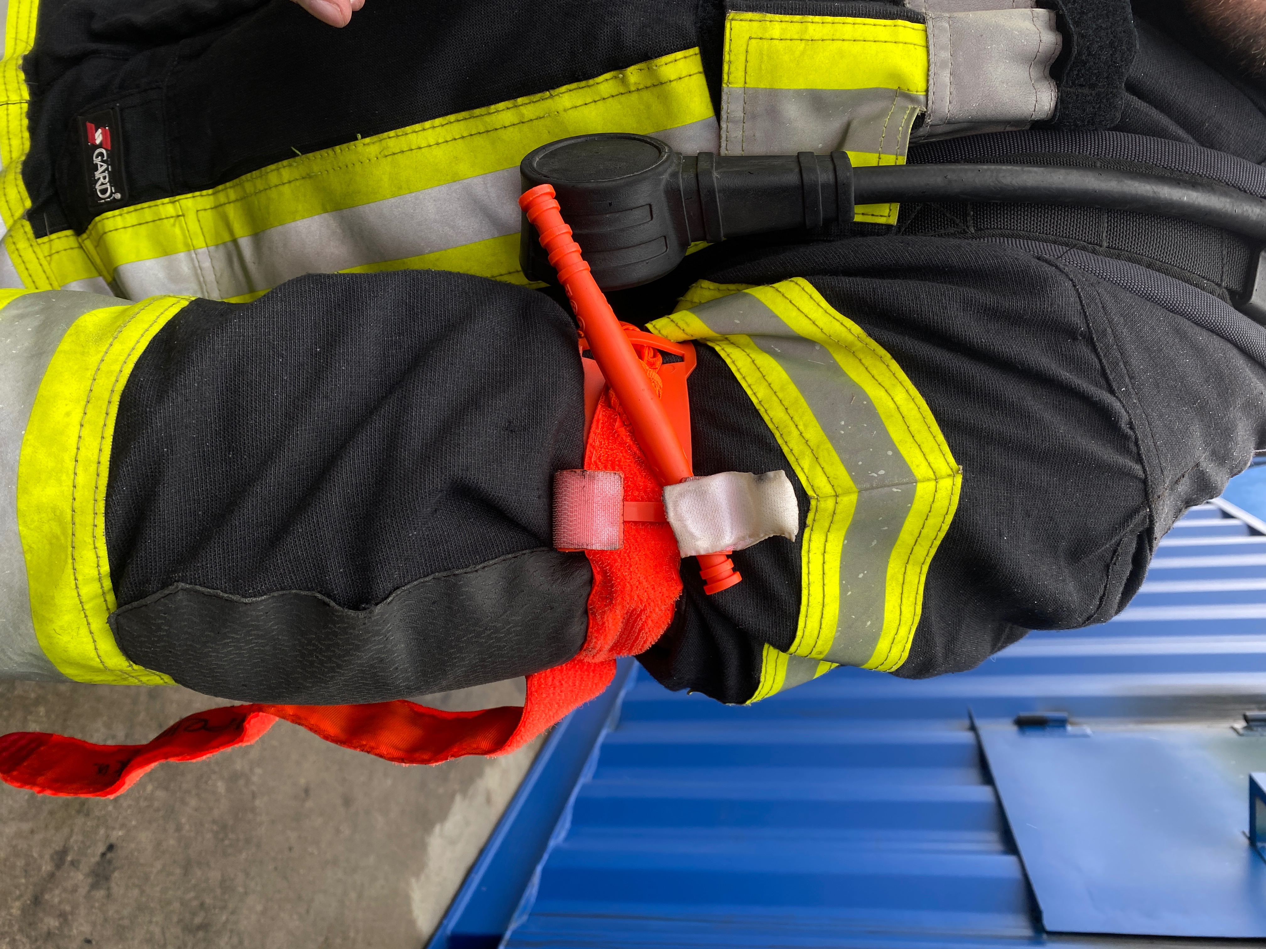 Все изделия были помещены во внешние карманы БОП(боевая одежда пожарного, далее БОП), на уровне груди инструкторов тренажера, именно инструкторы получают самою большую нагрузку. В среднем одна тренировка длится примерно 15 минут, находясь в нейтральной зоне, температура которой составляет 200-250 градусов, иногда её могут разгонять до 400, под потолком же 500-700 гр.(прошу не придираться к нюансам, в контексте теста они не важны).