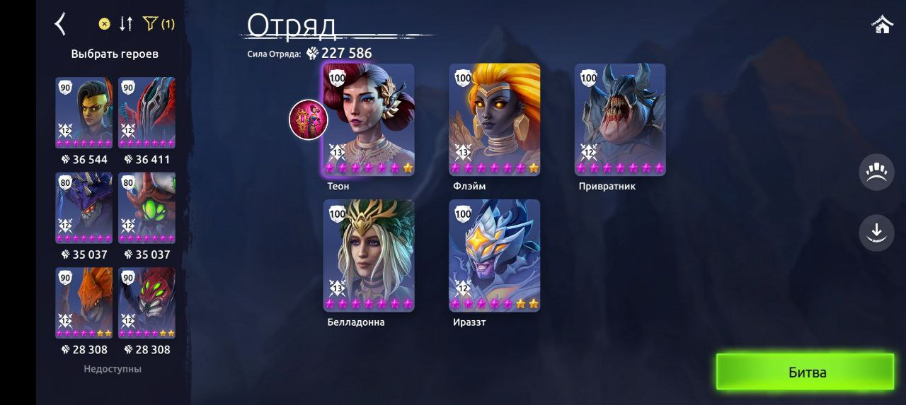 Стоит отметить, что состав с Теодором менее надежный, поэтому соперника лучше подобрать с равным или чуть меньшим БМ, чем у нас. Бонусы это компенсируют.