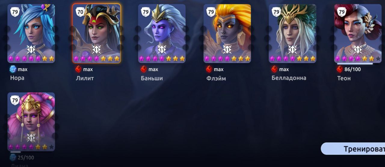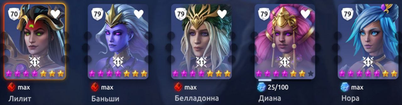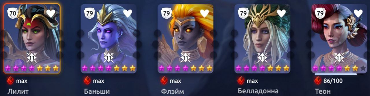 Теон: 5, Лилит: 4, 5, Флэйм: 2, Баньши: 3, Белладонна: 4