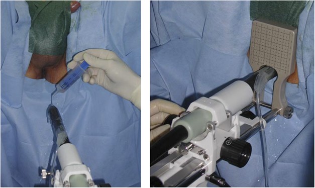 Suprapubic shaving . Disinfection of the external genitalia, the lower abdomen and the perineum . The apical parts of gland are resected last . [fig prostate resection (TURP)] .