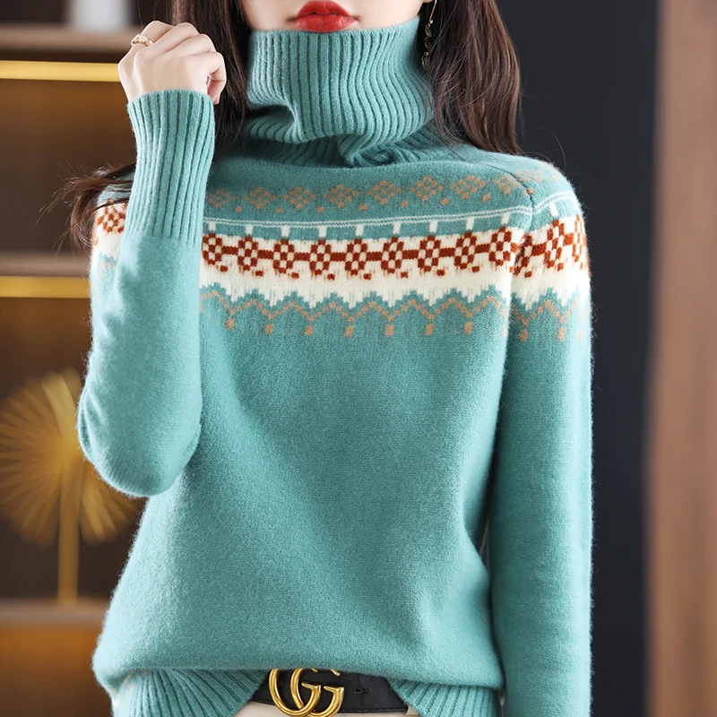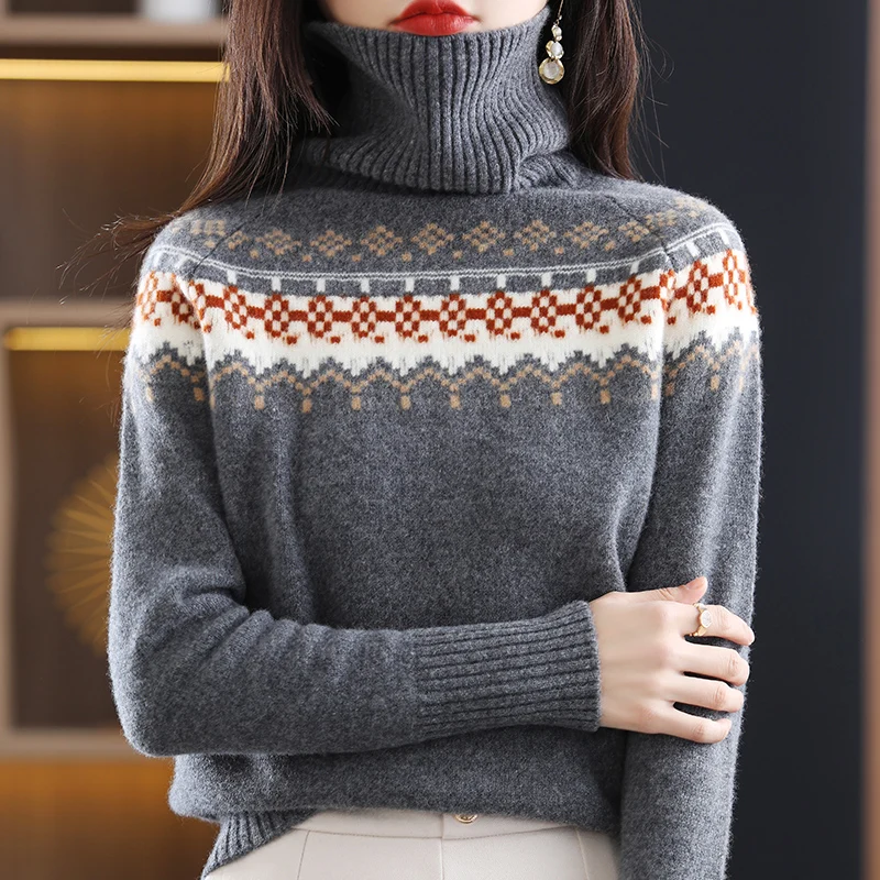 zuJexGJabJДолго искали Turtleneck Jacquard 100% Merino Pure Wool Knit Sweater Women's Fall/Winter Plus Size Retro Slouchy Pullover Thickened Jumper Top, но не могли найти? Предоставляем вашему вниманию Turtleneck Jacquard 100% Merino Pure Wool Knit Sweater Women's Fall/Winter Plus Size Retro Slouchy Pullover Thickened Jumper Top по лучшей цене на рынке!