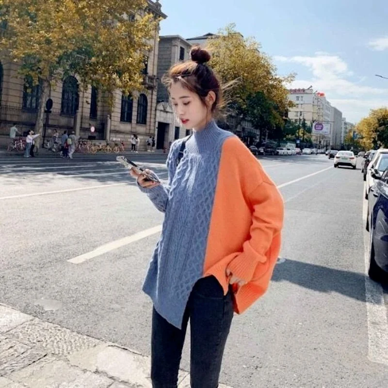 «Turtleneck Stitching Sweater Women 2021 Autumn and Winter New Korean Irregular Loose Pullover Sweater Top Fashion Sweater» по лучшей цене на рынке! Всего за 13$ (1235рублей)