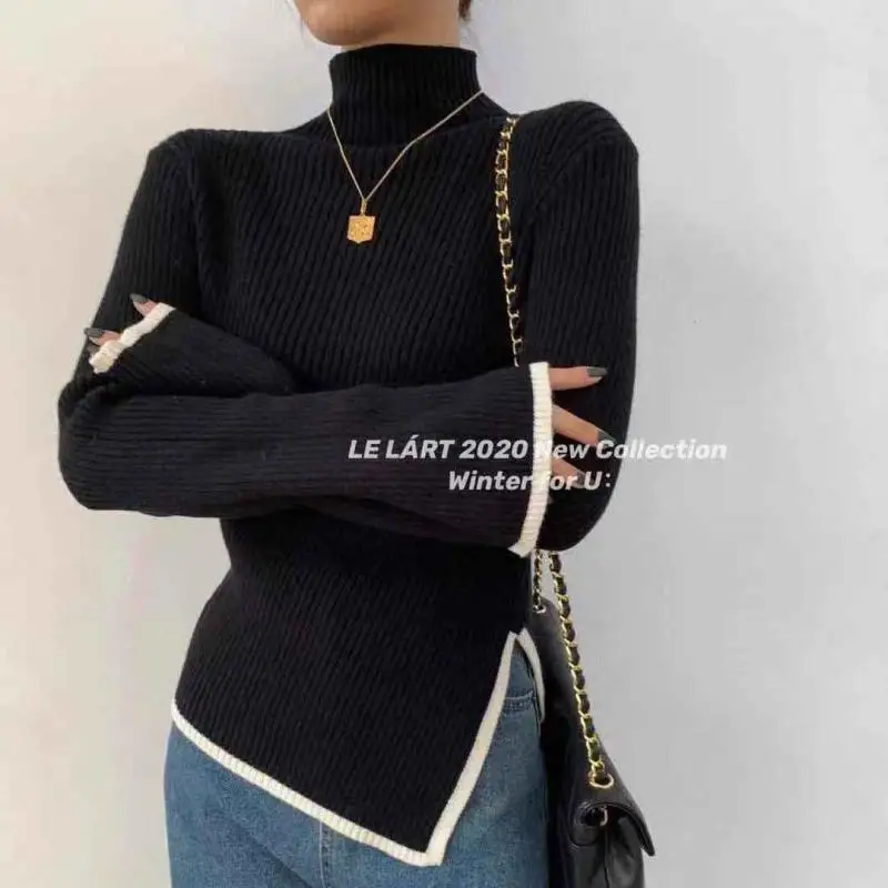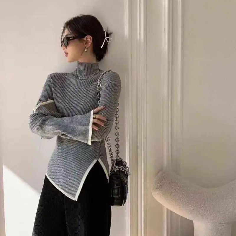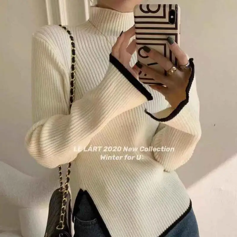 «Turtleneck Women Sweater 2022 Autumn Winter New Side Slit Pullover Tops Korean Fashion Knit Sweaters Long Flare Sleeve Basic» по лучшей цене на рынке! Всего за 14$ (1330рублей)
