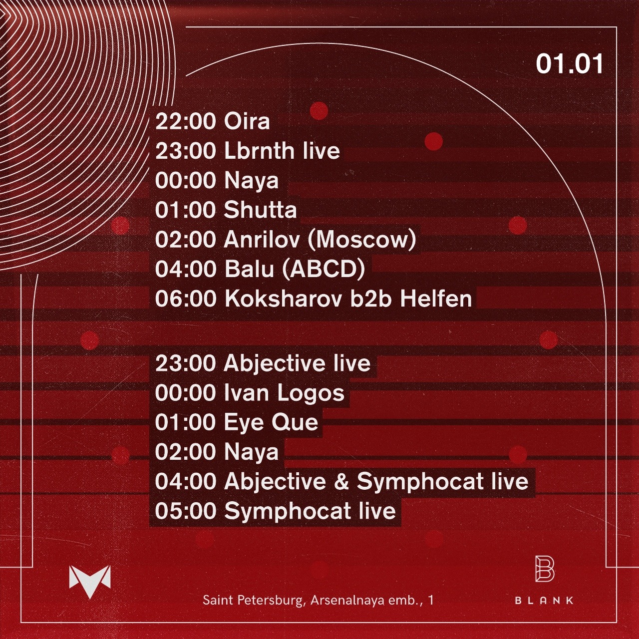Тусовки: 1 январяDANCE WITH US1) Blank: Второй день 2) Mosaique: NYE Afternight 3) Танцплощадка 4) Union