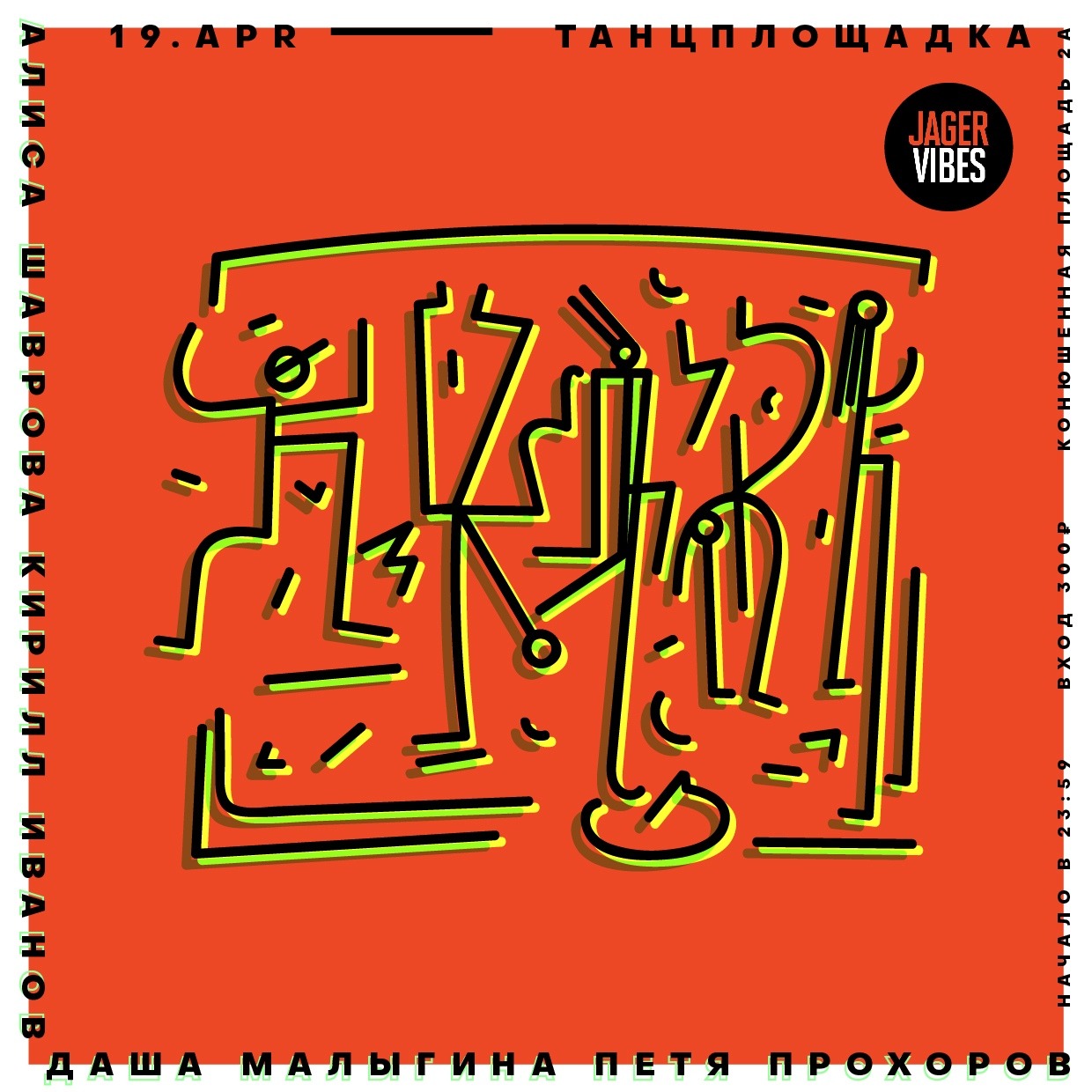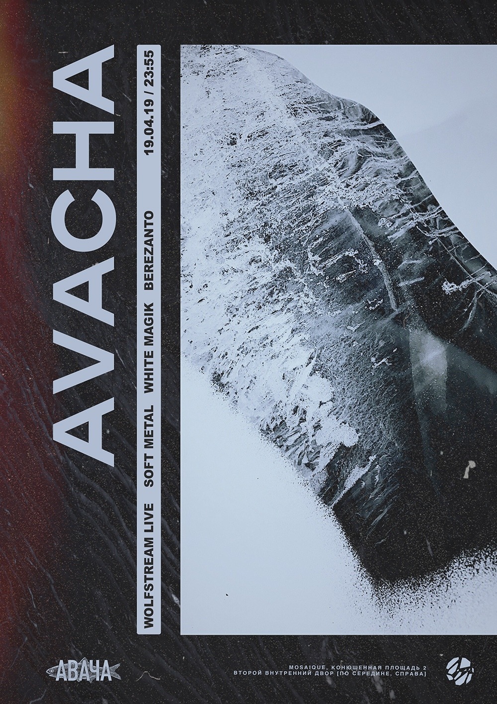 Тусовки: Пятница, 19 апреляDANCE W!TH US1) Stackenschneider: Sumeba Miyako 2) RAF25: Mastodon Series #2 3) Mosaique: Avacha 4) Танцплощадка 5) КПД: Somatik Fest 6) Kuznya7) Мачты8) Union