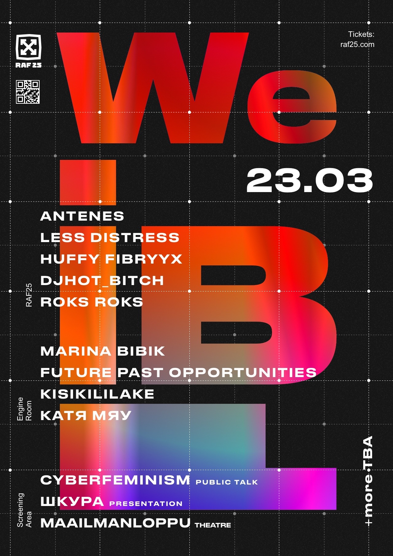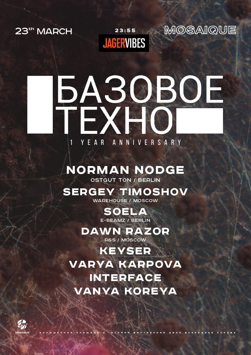 Тусовки: Суббота, 23 марта.DANCE W!TH US1) RAF25: Weibl2) Клуб: Фемлоты 3) Мозаика: Базовое Техно4) КПД: Lethal 5) Blank: Affair6) Stackenschneider: Heisenberg Takeover7) Танцплощадка8) ХВ: Impact