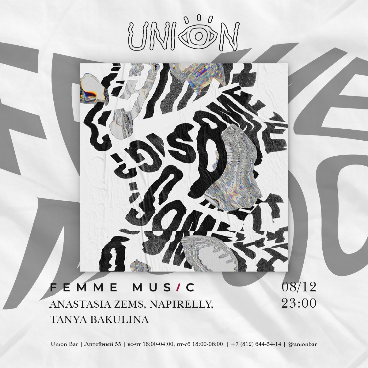 Тусовки: Суббота, 8 декабря.DANCE WITH US1) Blank: Roots United Night2) RAF25: ФОМО 3) Mosaique: Stand 4) Stackenschneider: T A K T 5) Танцплощадка 6) Мачты 7) Union 8) Мотив 9) Клуб Света 10) КПД: Goa Buddit! 11) Kuznya