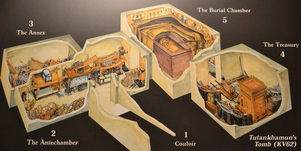 Гробница Тутанхамона — одна из очень немногих царских гробниц, случайно уцелевших от грабежей. Ослепительные драгоценности, ее наполнявшие, дают выразительное представление о легендарных богатствах фараонов. Стены усыпальницы были из золота; в нескольких золотых гробах, вставленных один в другой, каждый со скульптурной маской фараона, покоилась мумия, сплошь усыпанная драгоценностями и амулетами.