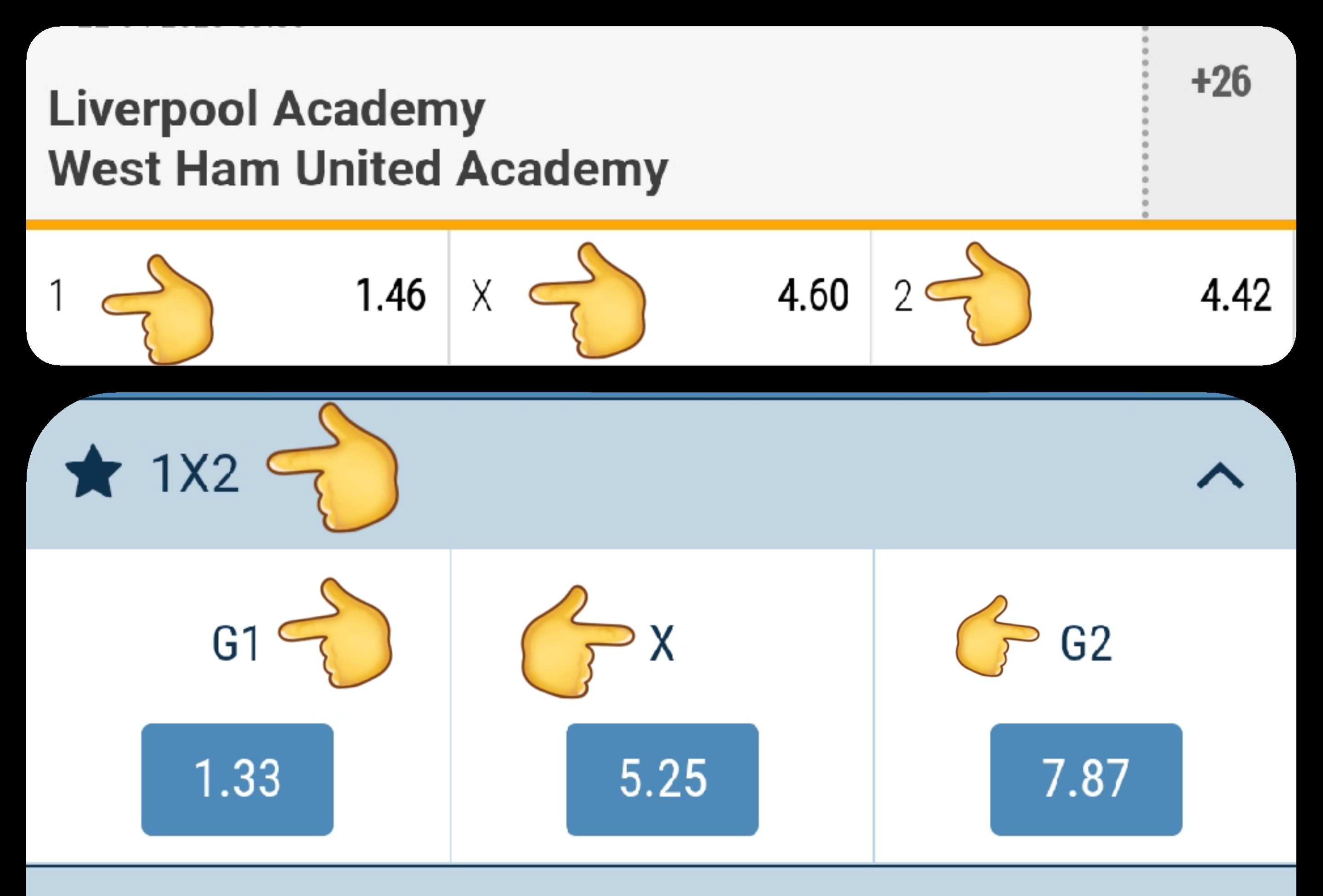 -Algunas casas como 1xbet usan el tipo de formato G1 x G2 que básicamente es la misma explicación anterior.