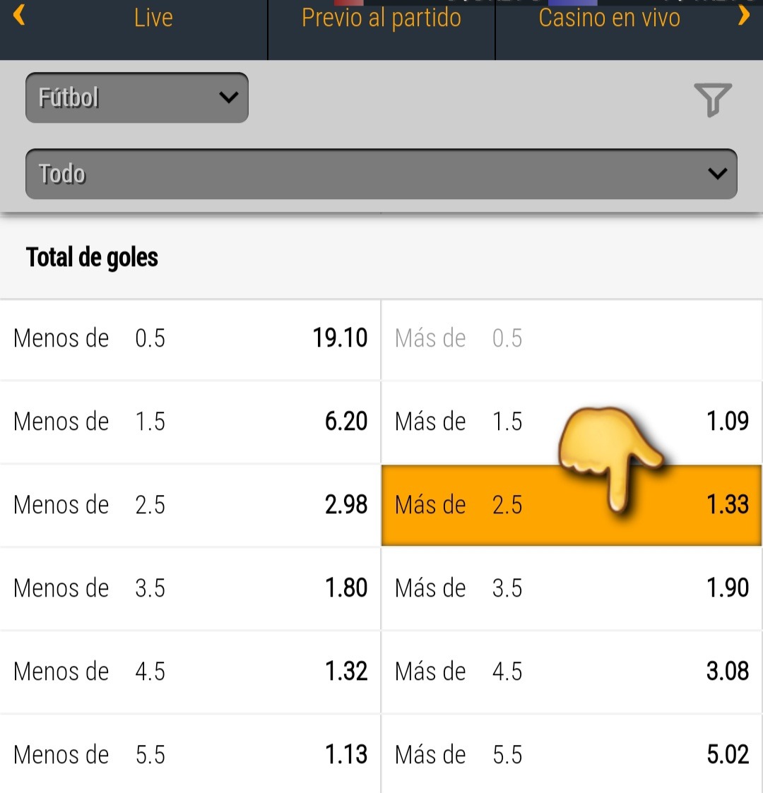 👇 En la imagen mostramos la selección de una apuesta para +2.5 goles para PlanetOfBets 👇