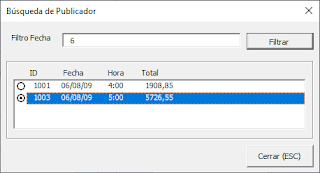 Luego colocamos la fecha que deseamos. Para buscar el día 06, se coloca solo 6. Para buscar los números 12, 20 , 25, o cualquier otro, se colocan los dos números. Si se coloca * aparecerán todos los conteo.