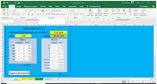 En la celda I4 agregamos la fecha que inicia la asamblea, independiente si es de 1 o 3 días. En D6 la hora en que se agregaran los datos. En I6 la fecha que se agregan los datos. D10 a D15, I10 a I18 la cantidad de Billetes y monedas. Finalmente, damos clic en registra movimiento.