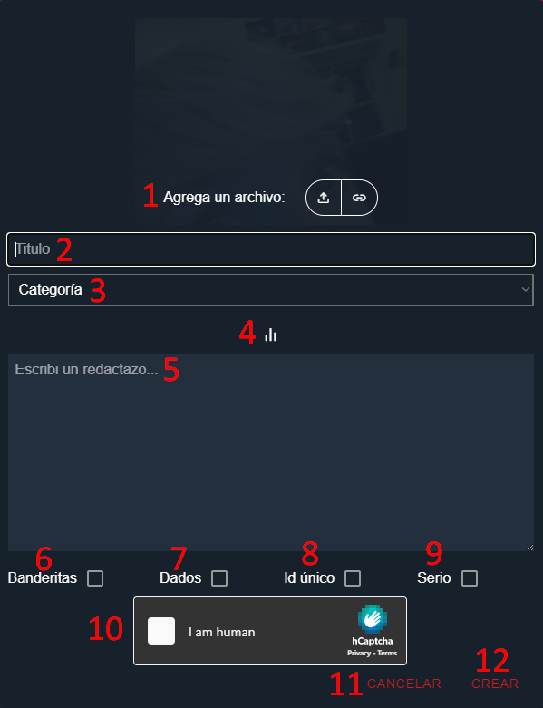 La cadenita a la derecha del botón para subir archivos. Podés pegar un link, video e imágen de PornHub, YouTube, BitChute, Daily Motion.