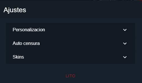 Ajustes sirve para cambiar la skins, personalización y auto censura dentro de Rouzed.