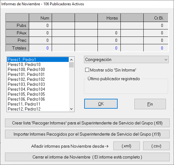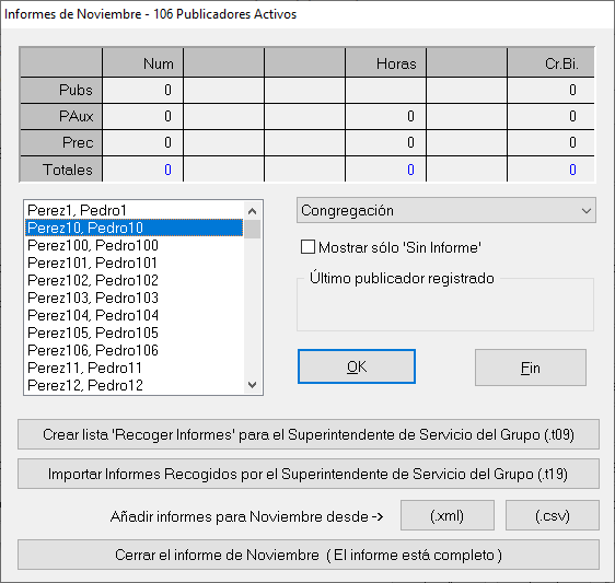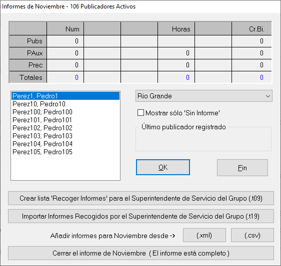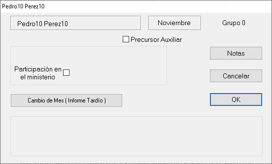 Solo agregamos manualmente los datos, y damos clic en ok. Nota importante: Si el publicar no participo, vaya a Notas y coloque que no informó. El software va interpretar que no envió el informe.