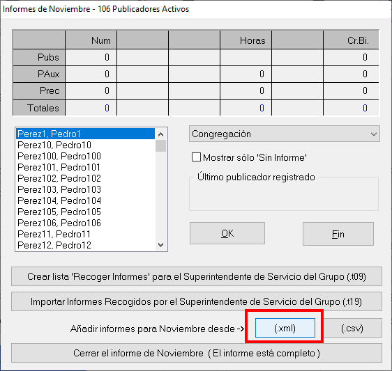 8) En la Hoja Informes, agregamos los informes que nos envíen los hermanos para que se reflejen en la hoja TSWIN. Se puede usar formularios google para recoger los informes vía digital