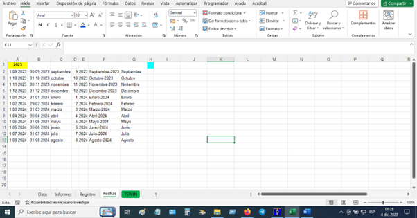 10) Hoja Fechas, es para colocar los meses del año de servicio.