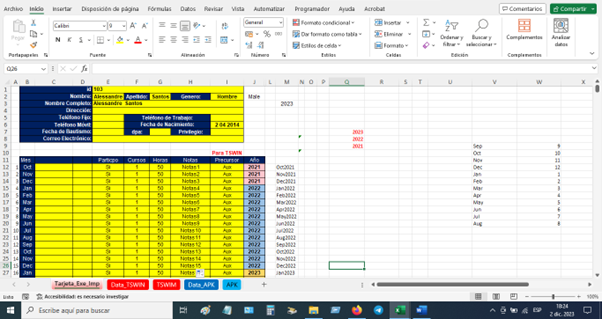 1) En la Hoja Tarjeta_Exe_Imp, agregamos los datos del publicador