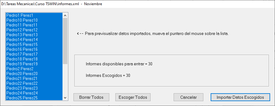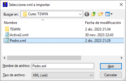 4) Con el archivo Pedro.xml, lo importamos en el software TSWIN