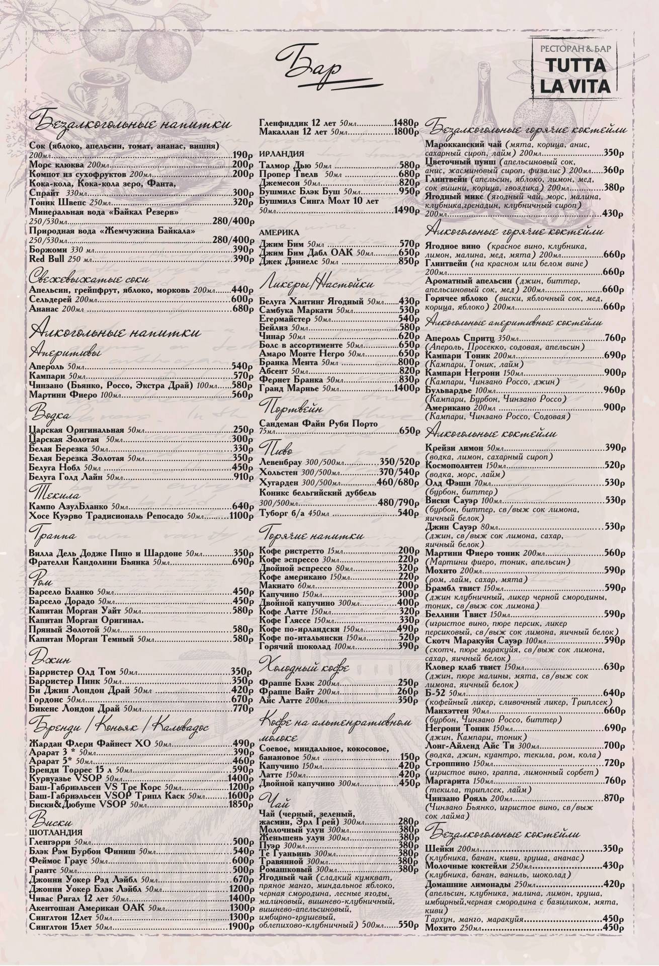 Tutta la vita меню 92 фото