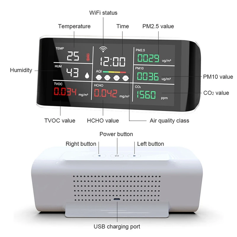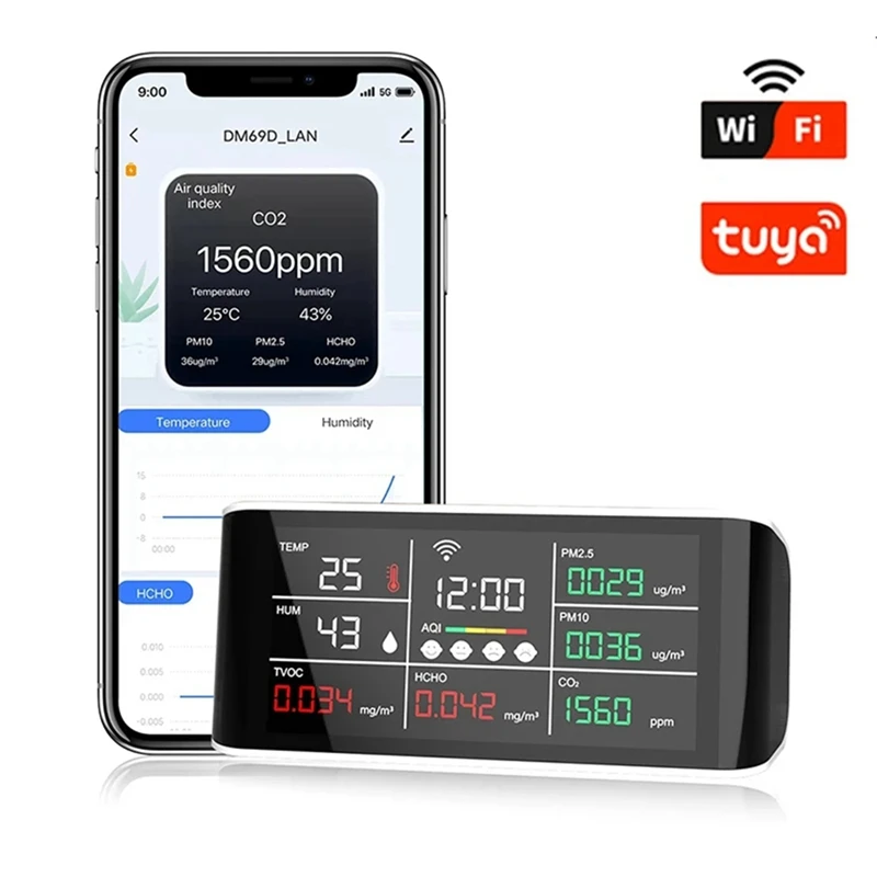 wnxKYWtpWЗдесь вы сможете купить Tuya 9 In 1 WIFI Air Quality Detector CO2 Gas Tester PM2.5 PM10 TVOC Formaldehyde Monitor LED Display Infrared Sensor с бесплатной доставкой до вашего почтового отделения.