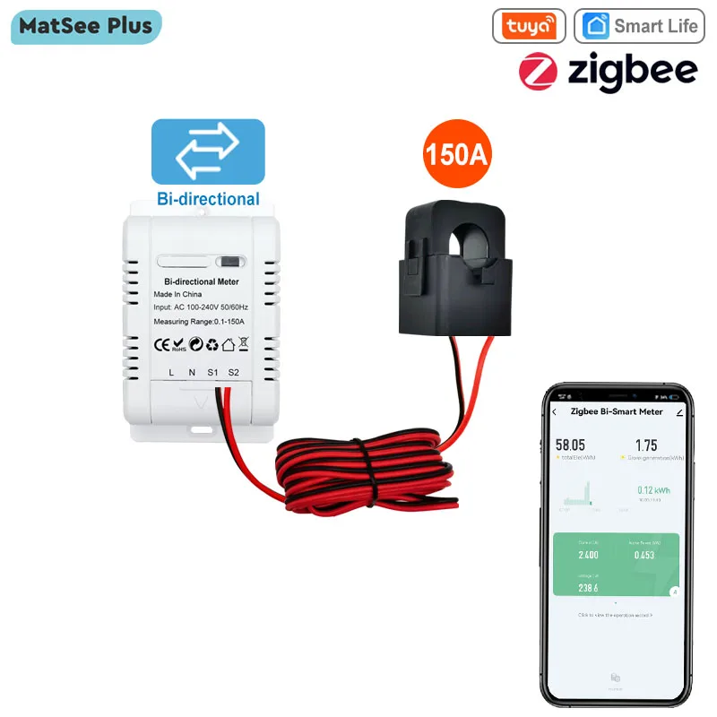 IUiecxEjrЗдесь вы сможете купить Tuya Smart Bidirectional Two Way ZigBee Energy Meter 150A Clamp Current Sensor for Solar Import Export KWh Monitor 110V 240VAC с бесплатной доставкой до вашего почтового отделения.