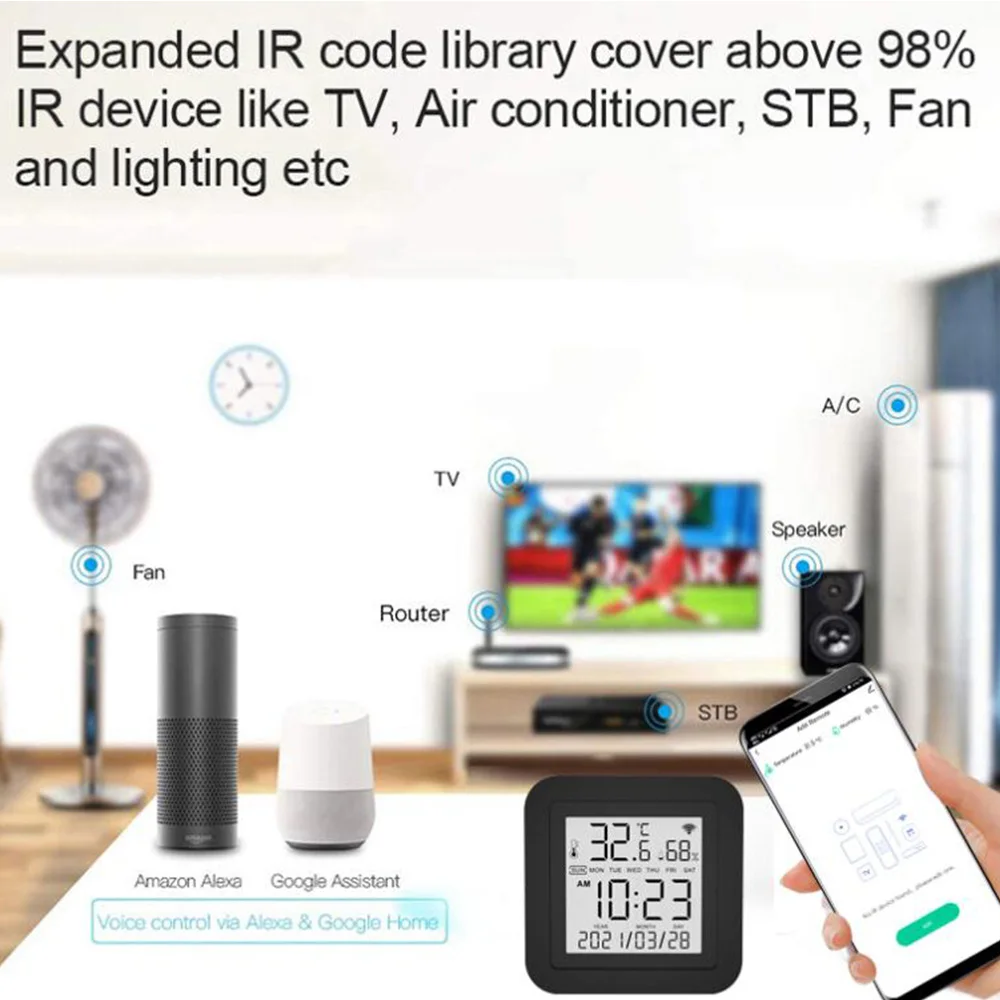 OHKUhmyxДолго искали Tuya Smart LCD Temperature Humidity SensorDetector Timer IR Remote WiFi Universal Infrared Controller Alexa Google Voice Command, но не могли найти? Предоставляем вашему вниманию Tuya Smart LCD Temperature Humidity SensorDetector Timer IR Remote WiFi Universal Infrared Controller Alexa Google Voice Command по лучшей цене на рынке!