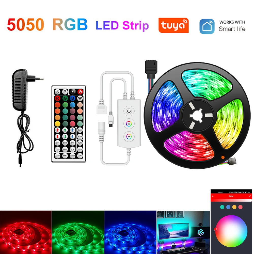 SAjJqFOoPHere you can buy Tuya Smart Life WiFi RGB 5050 LED Strip Light 1-10M Decoration Lamp IR Remote Control 12V Power APP Voice Control F Alexa Google with free delivery to your post office.