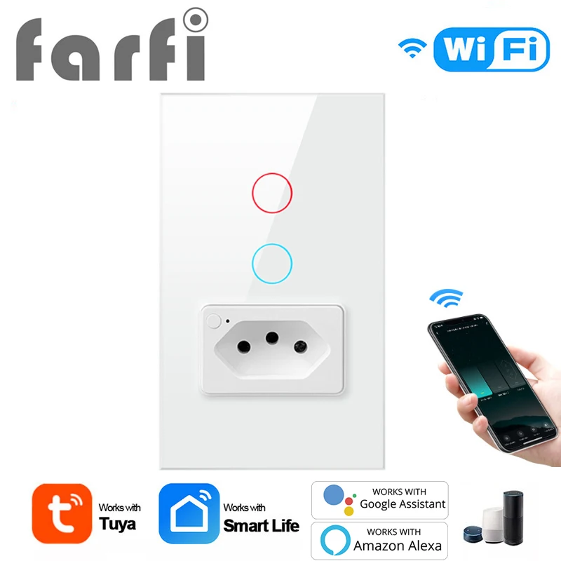 YyyWrSwBqPHere you can buy Tuya Smart WiFi Light Switch & Socket 2in1,Brazil Standard 4X2 Glass Panel 1/2 Buttons Smart Switch Works With Alexa Google Home with free delivery to your post office.