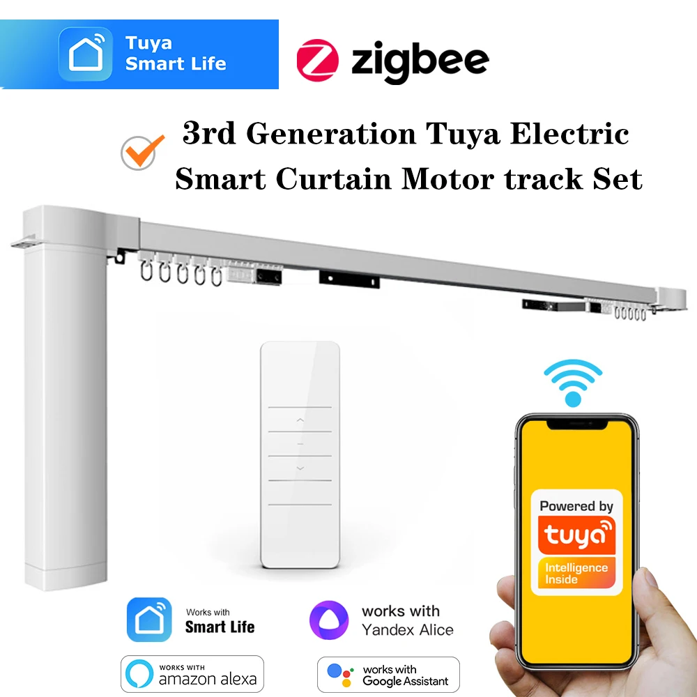 VhPELRuQXCHere you can buy Tuya Smart Zigbee 3rd Generation Electric Curtain Motor Motorized Engine With Curtain Track Rail Cornice Alexa Google Assistant with free delivery to your post office.