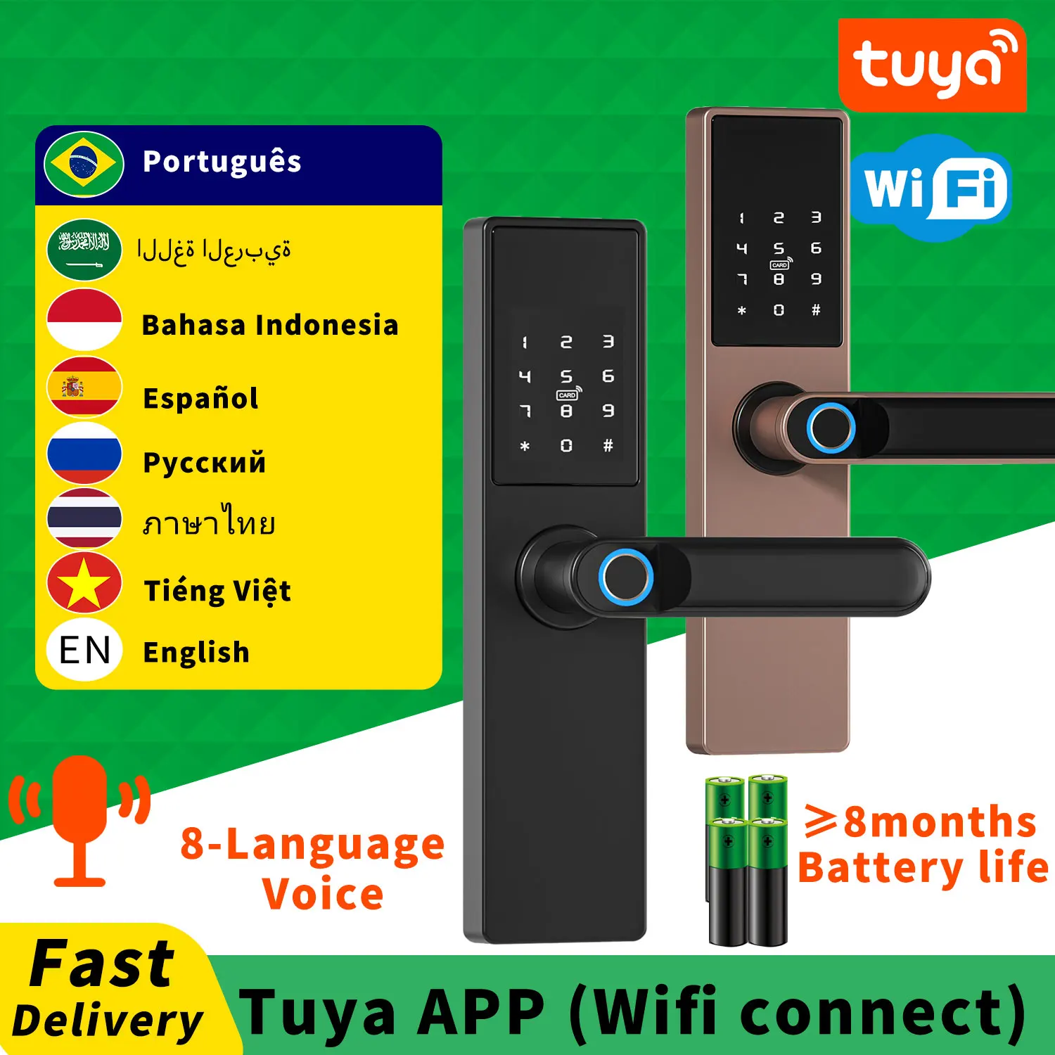 NVWFMAMRЗдесь вы сможете купить Tuya Wifi Electronic Smart Door Lock With Biometric Fingerprint / Smart Card / Password / Key Unlock/ USB Emergency Charge с бесплатной доставкой до вашего почтового отделения.