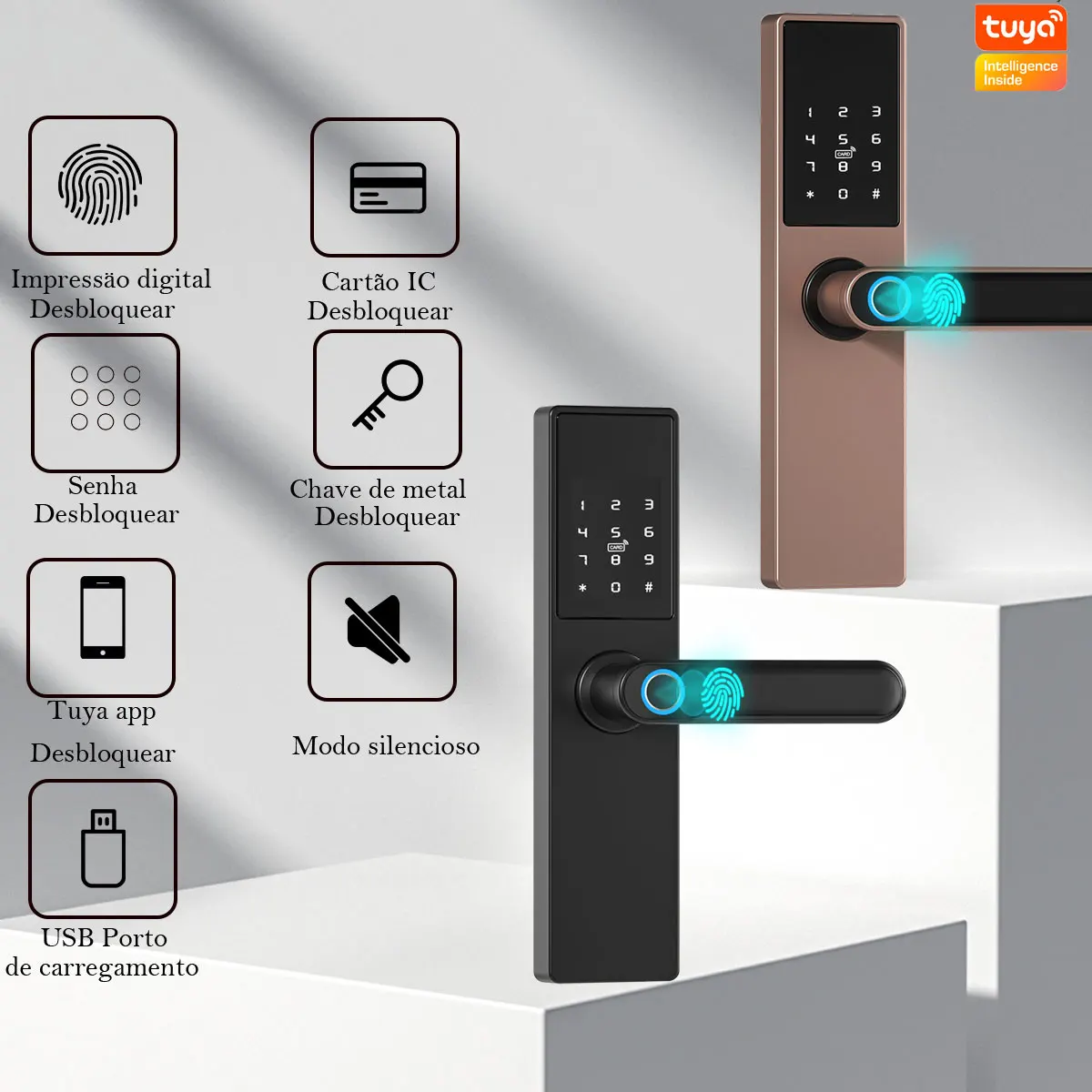 Tuya Wifi Electronic Smart Door Lock With Biometric Fingerprint / Smart Card / Password / Key Unlock/ USB Emergency Charge - Купить с бесплатной доставкой