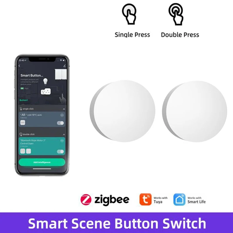 Tuya ZigBee Button Scene Switch Intelligent Linkage Smart Switch Battery Powered Automation Work With Smart Life Zigbee Devices - Купить с бесплатной доставкой