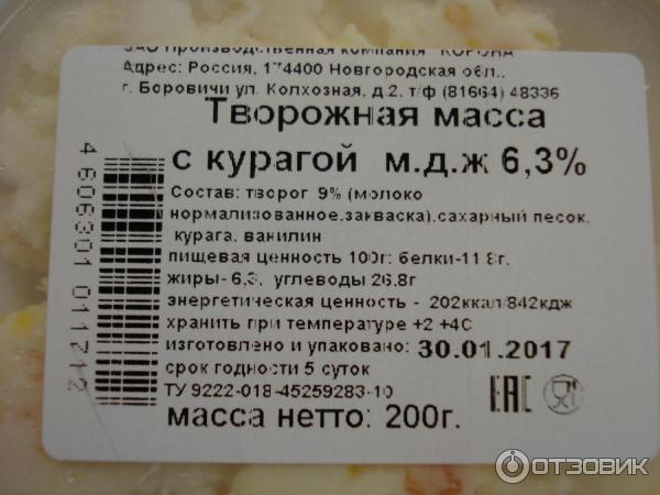 Творожные массы жирность