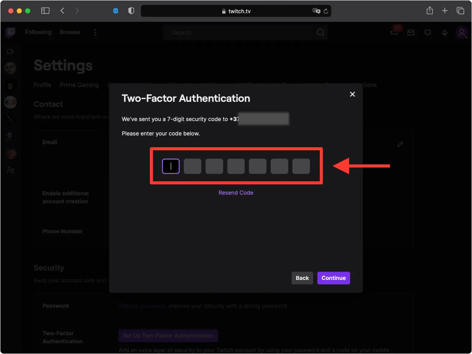 Twitch verification code