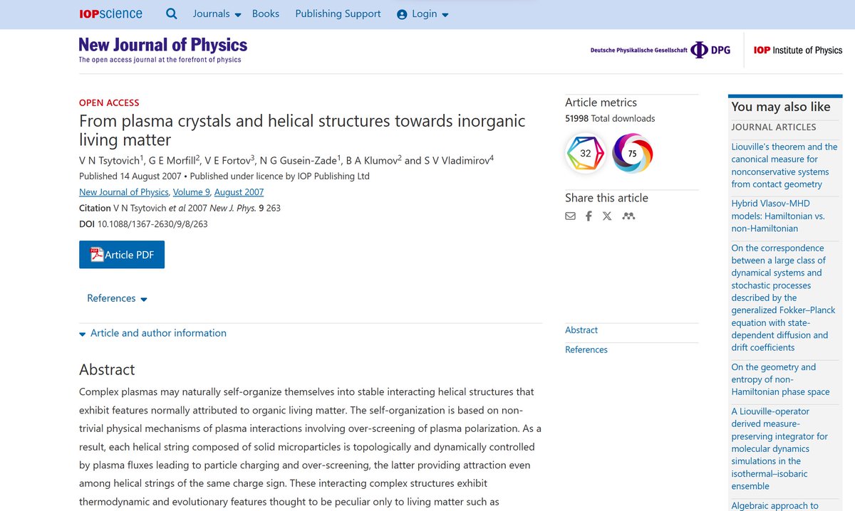 مدلسازی کامپیوتری نشان داد ذرات غبار باردار ساختارهای خودسازمانده مارپیچی تشکیل میدهند که میتوانند خود را شبیهسازی و تکثیر کنند. این رفتار همان چیزی است که در موجودات زنده زمینی هم منجر به تکامل و تنوع حیات شده است. چه بسا فضای میانستارهای پر باشد از جاندارانی پلاسمایی.